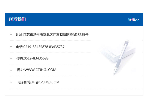 傳真:0519-83435688    郵編:213135    網址:WWW.czjhgj_com.dongshun56.com    電子郵箱:JH@czjhgj_com.dongshun56.com